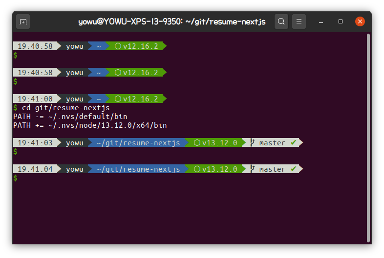 개발할 때 Node.js를 가장 많이 사용하므로 관련된 설치를 합니다. 예전에는 node 명령어를 apt 통해 바로 설치했지만 이제는 nvs 라는 Node Version Switcher 라는 Node.js 가상화 환경 도구를 사용합니다. nvs 설치시 .rc 파일을 조작하는 부분이 있으므로 zsh 환경에서 설치를 진행합니다.