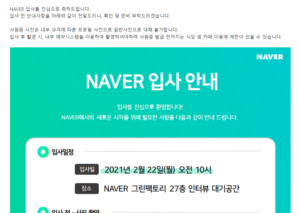 이직 전략 역시 심플했다. 이전의 이직 경험을 발판 삼아 결과 통보까지 오래 걸리는 회사와 오래 걸리지 않는 회사 두 개 그룹으로 나누어서 오래 걸리는 회사부터 진행했다. N사와 N사 계열사, K사 3군데를 보았는데, N사에 합격하게 되어 오래 걸리지 않는 회사 그룹은 진행하지 않고 바로 이직하게 되었다.