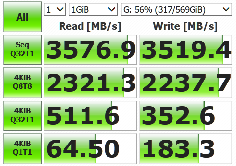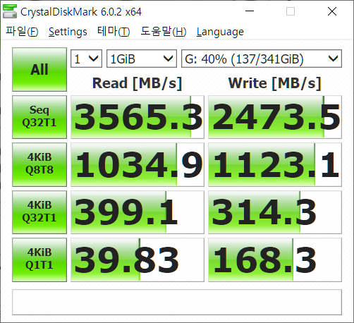 그리고 예상은 했지만, NVMe 2개 역시 성능이 썩 좋지 않다. 특히 2번째 NVMe 성능이 스펙이 크게 낮은데 이것은 지금 사용 중인 X470 보드가 최신 PCIe 4.0 스펙을 지원하지 않기 때문, 그리고 M.2 슬롯 중 두 번째 슬롯이 절반의 속도로 동작하기 때문이다. 그래도 X470이 해당 세대에서는 최상위 메인보드 라인이었을 텐데 조금 아쉬운 부분이다.