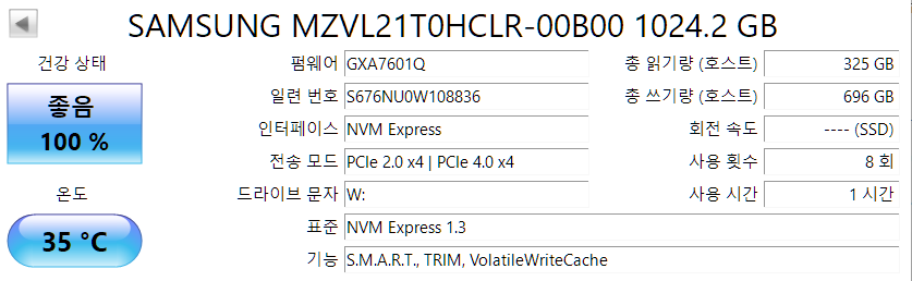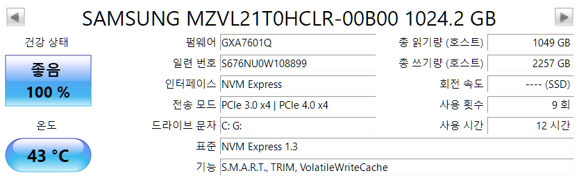 - SSD: SAMSUNG PM9A1 M.2 NVMe 1000GB x2